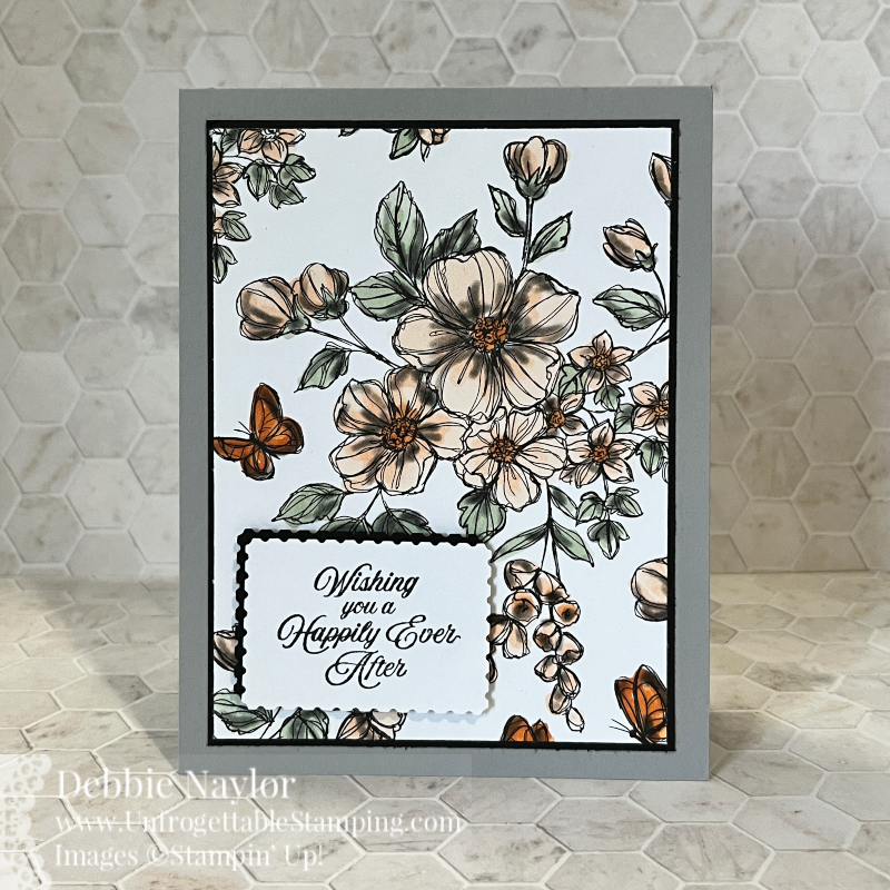 This first card was made by Debbie Naylor. Such a pretty card to wish the new Mr. and Mrs. a happily ever after. For all the details on her card, visit Debbie's blog.
