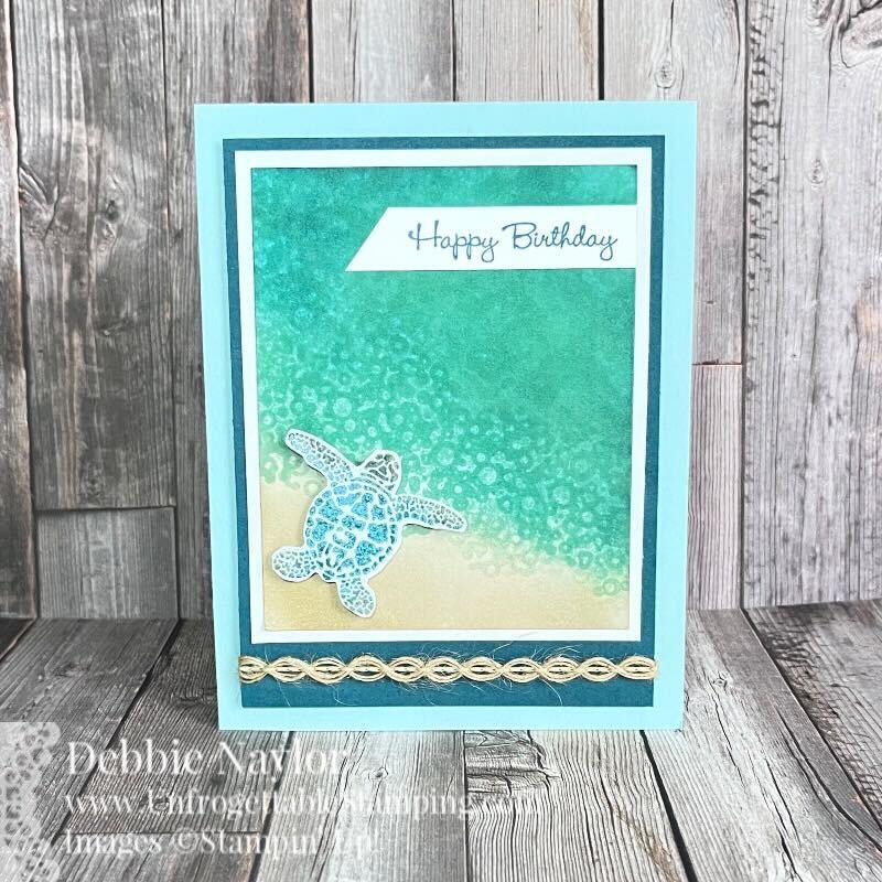 Debbie Naylor's card says a summer day at the ocean all over it. It's a great card for the summer birthday or the turtle lover in your life. Be sure to hop on over to Debbie's blog for more details.
